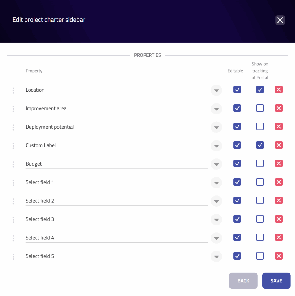 Nyní můžete vytvořit více karet projektu chart s jinými políčky než ve výchozí kartě projektu a přiřadit je ke konkrétním typům projektů. Vzhled karty projektu se mění podle typu projektu. Můžete si vybrat, co udělat s informacemi, které již nejsou pro nový typ projektu relevantní. - Výchozí portál / formulář / karta projektu