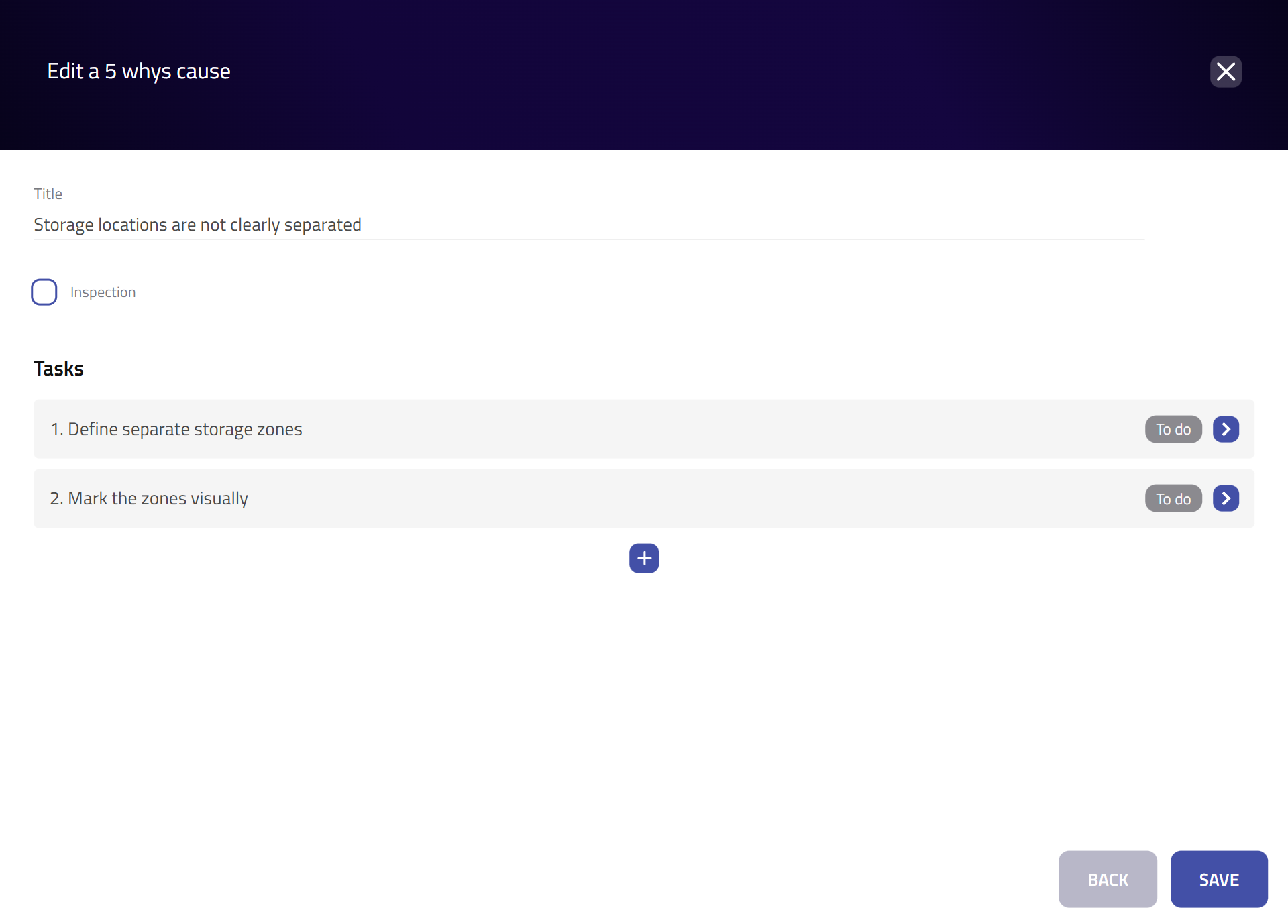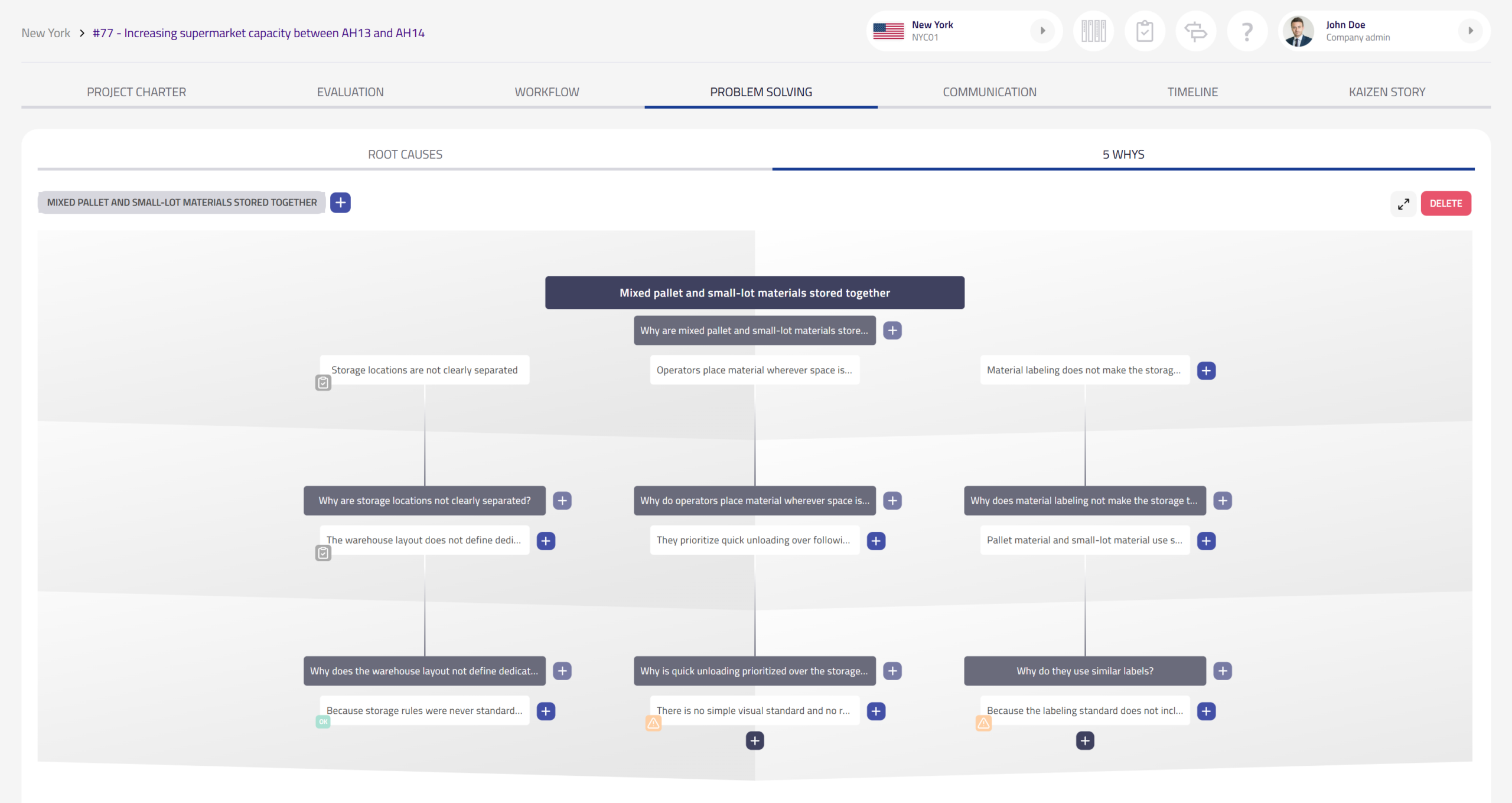 - Multiple 5 Whys per kaizen: Users can create and manage more than one 5 whys diagram inside a single kaizen.