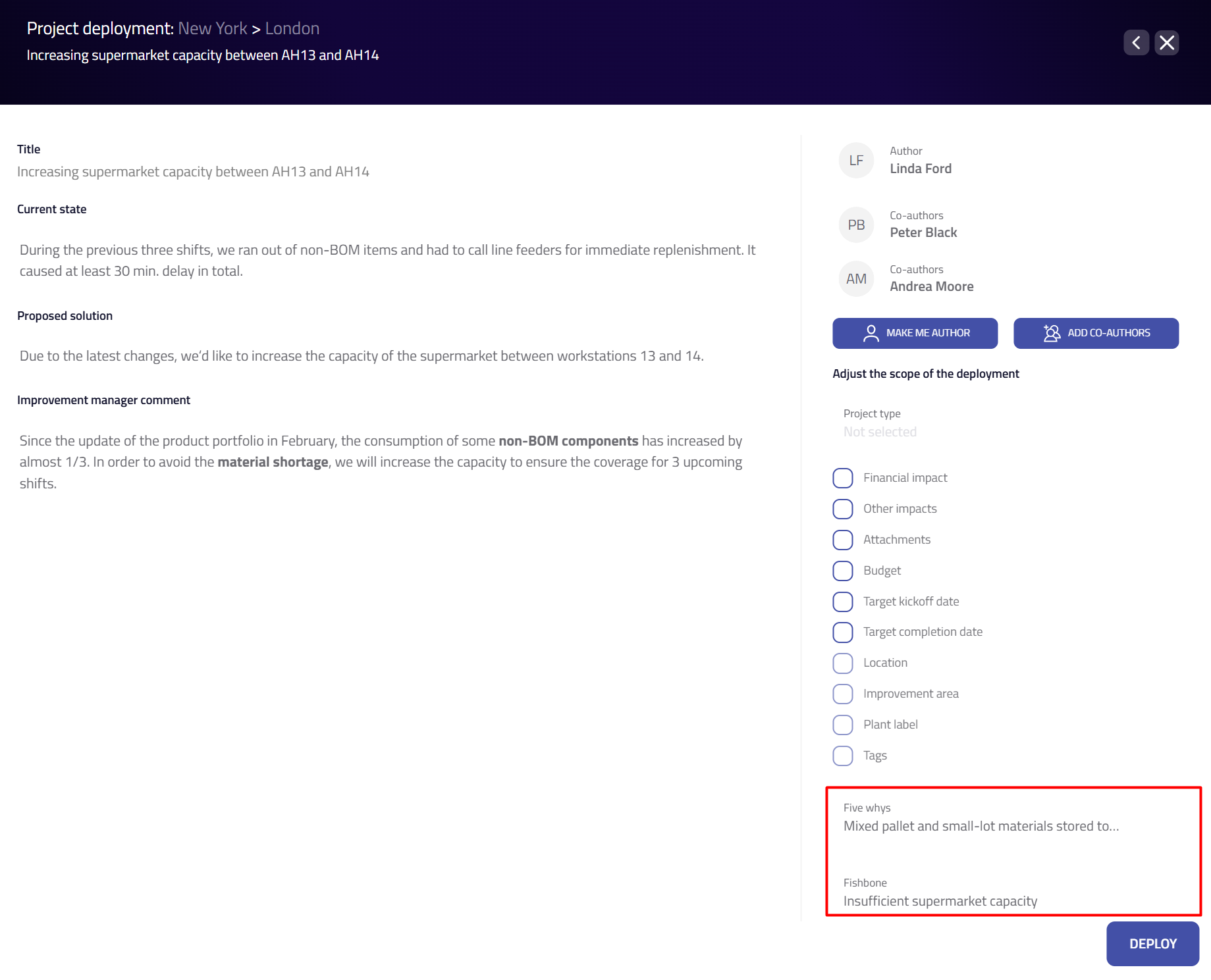 - Once a kaizen is deployed to a new plant, you can easily watch the progress of the deployed kaizens