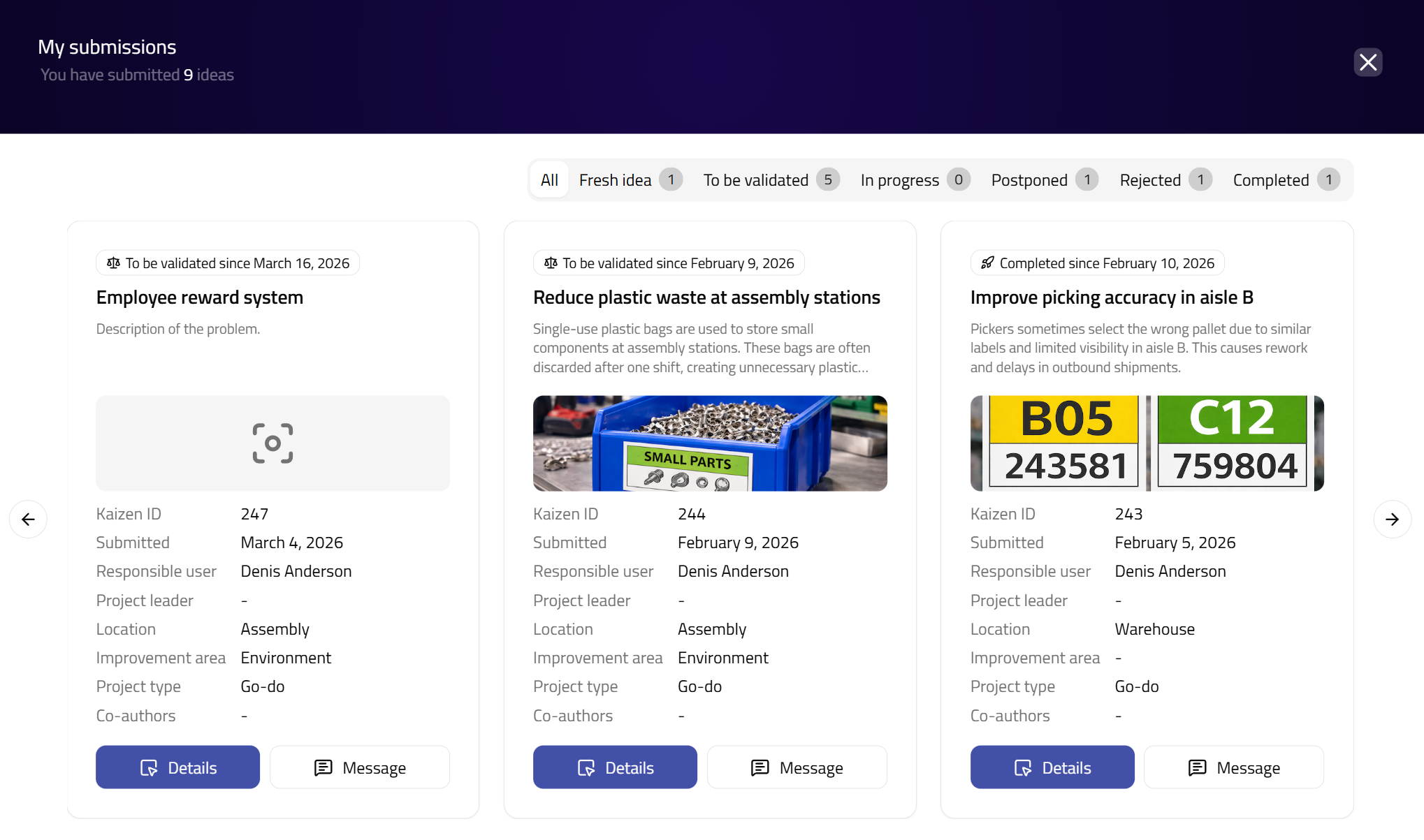 Submitters can view the list and details of kaizens they submitted - eKaizen portals (previously known as Homepages) & Submission forms signpost